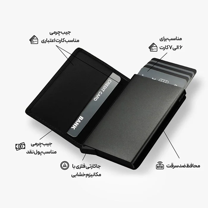 کیف پول دکمه دار-خشابی چرم ایتالیایی بستون Black کد 172713101 پولاریس
