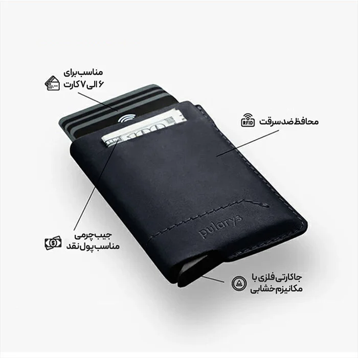 کیف پول دکمه دار-خشابی چرم ایتالیایی بستون Black کد 172713101 پولاریس