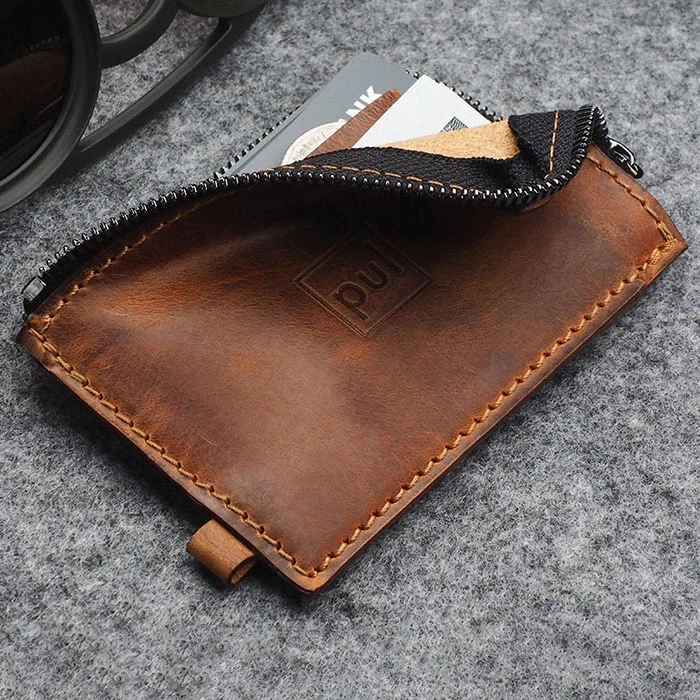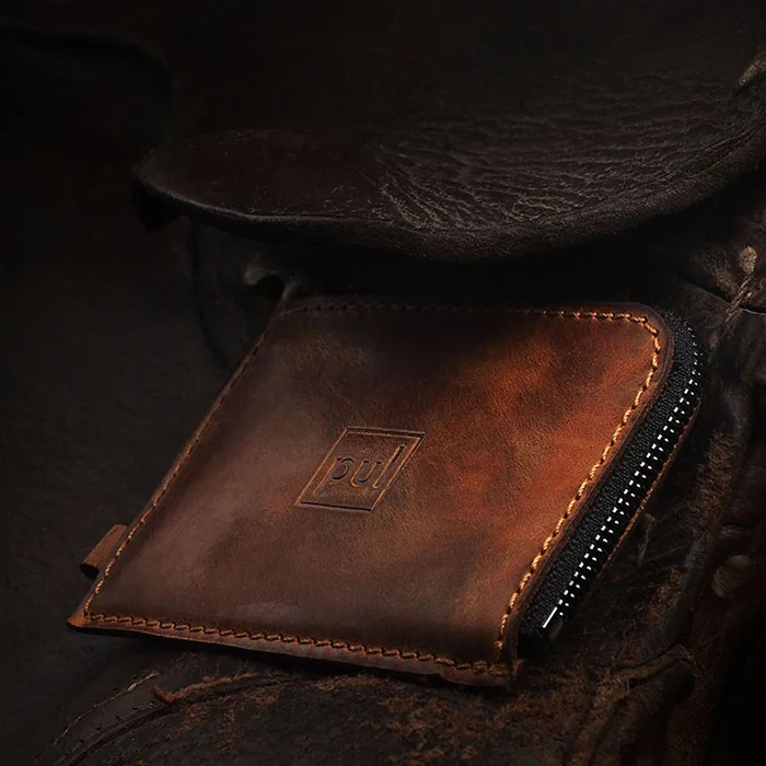 جاکارتی زیپدار چرم وینتیج الدتایمر Brown کد 189531007 پولاریس