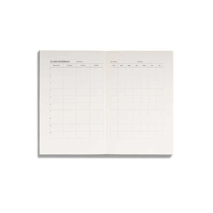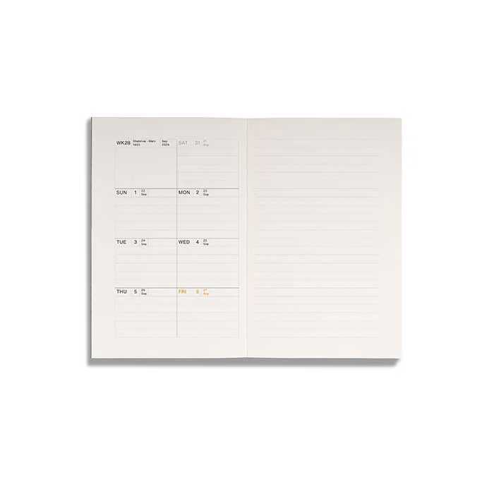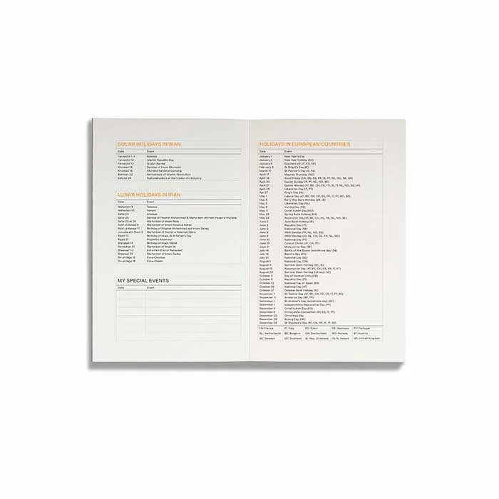 این دفتر نیز به هر هفته یک جدول و یک صفحهٔ یادداشت اختصاص داده شده است.