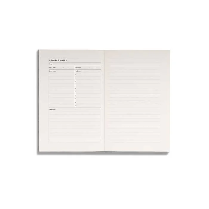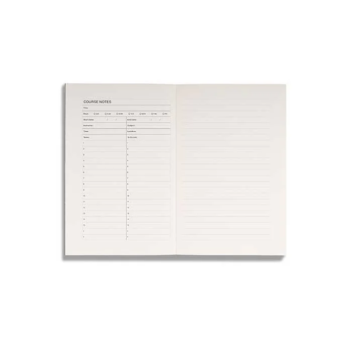 دورهها، پروژهها و جدول یادداشت جلسات که در ابتدا و انتهای دفتر قرار دارند به شما