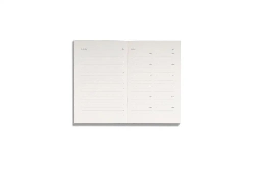 دفتر برنامه ریزی روزانه 12 ماهه بدون تاریخ نسخه فارسی کاغذ اینک ول A5 جلد طوسی ته بسته بن / Basenotes