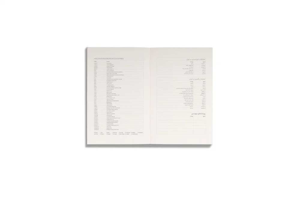 سال نمای روزانه 12 ماهه 1405 نسخه فارسی کاغذ اینک ول A5 جلد نقره ای مات ته بسته بن / Basenotes