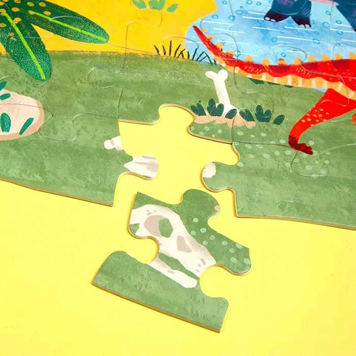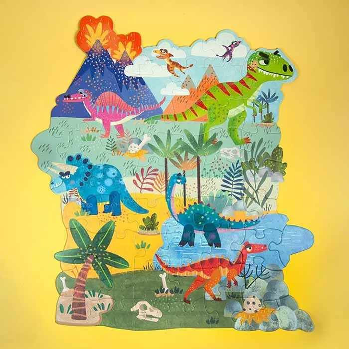 پازل دنیای دایناسورها یک پازل ۵۶ تکهای است که کودکان را به سفری ماجراجویانه در قلمرو دایناسورهای غولپیکر میبرد.