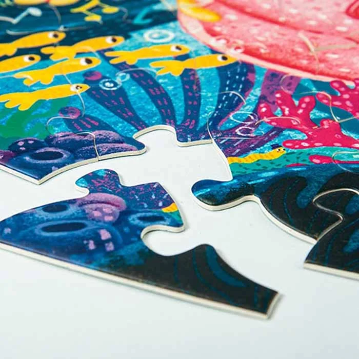 پازل پری دریایی کوچولو یک پازل ۸۰ تکهای است که کودکان را به دنیایی فانتزی و رنگارنگ زیر دریا میبرد؛