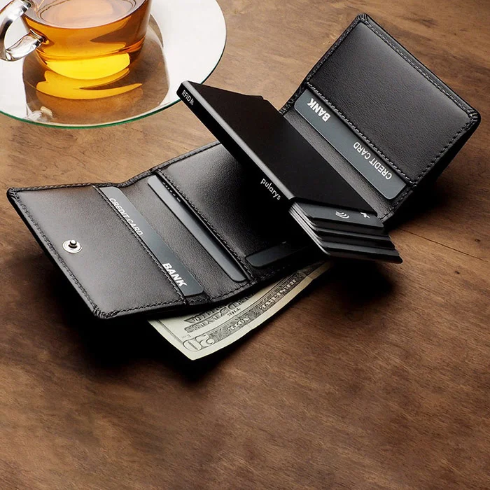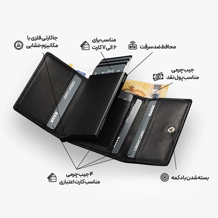 کیف پول دکمه دار-خشابی چرم ایتالیایی بستون Black کد 172713101 پولاریس