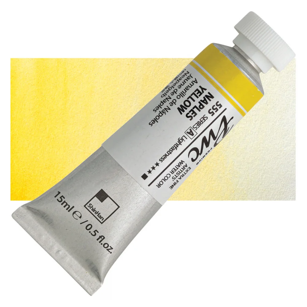 آبرنگ تیوپی 15 میل Naples Yellow کد 555 Pwc سری A شین هان