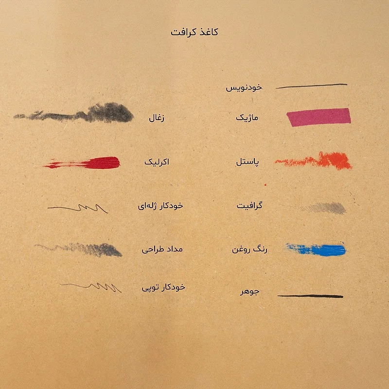 از باب رنگ «ایستادن در میانه» ویژگی خاص کاغذهای کرافت است. امکان خاصی که کاغذ کرافت برای کار با ابزارهای گوناگون در طیف گستردهای از «رنگهای روشن تا تیره» ایجاد میکند برآمده از همین قرار گرفتن آن در میان طیف رنگی کاغذهای رایج روشن و نخودیرنگ تا کاغذهای تیرهٔ مشکی است.
