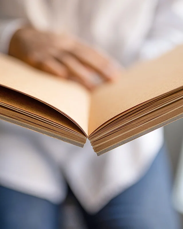 دفتر ۱۶۲۳ تمامکرافت مناسب برای یادداشت و طراحی در سایز وزیری است. برگها و جلد آن همگی کرافت هستند.