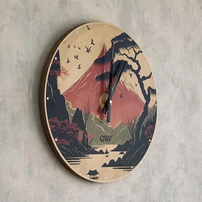 ساعت دیواری چوبی قطر 38 سانت کد 3 طرح منظره گودوود