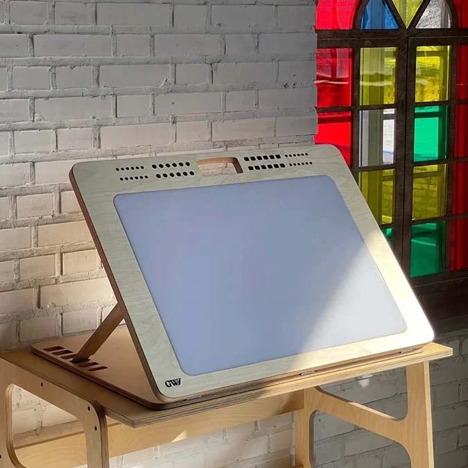 میز نور شیبدار، یک محصول کاربردی برای تمامی هنرمندان می باشد. متریال استفاده شده در آن، چوب چندلایه روسی بوده و با رنگ پلی استر پوشیده شده که باعث افزایش کیفیت محصول می شود. نکته مهم دیگر که این میز را از سایز میزهای مشابه متمایز می کند، وزن کم آن می باشد که آن را به محصولی قابل حمل تبدیل کرده است. در نهایت باید گفت این میز به گونهای طراحی شده که منجر به بهبود بهرهوری و کاهش خستگی ناشی از کار میشود.