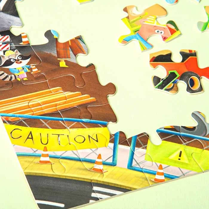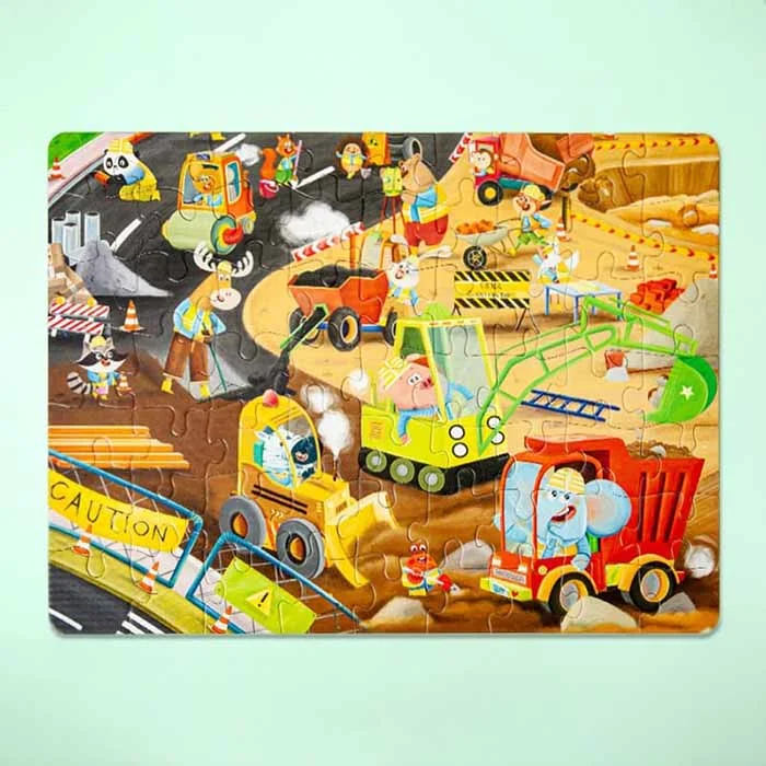 پازل ماشینهای راهسازی یک پازل ۶۳ تکهای است که کودکان را با یک کارگاه جذاب و انواع ماشینهای